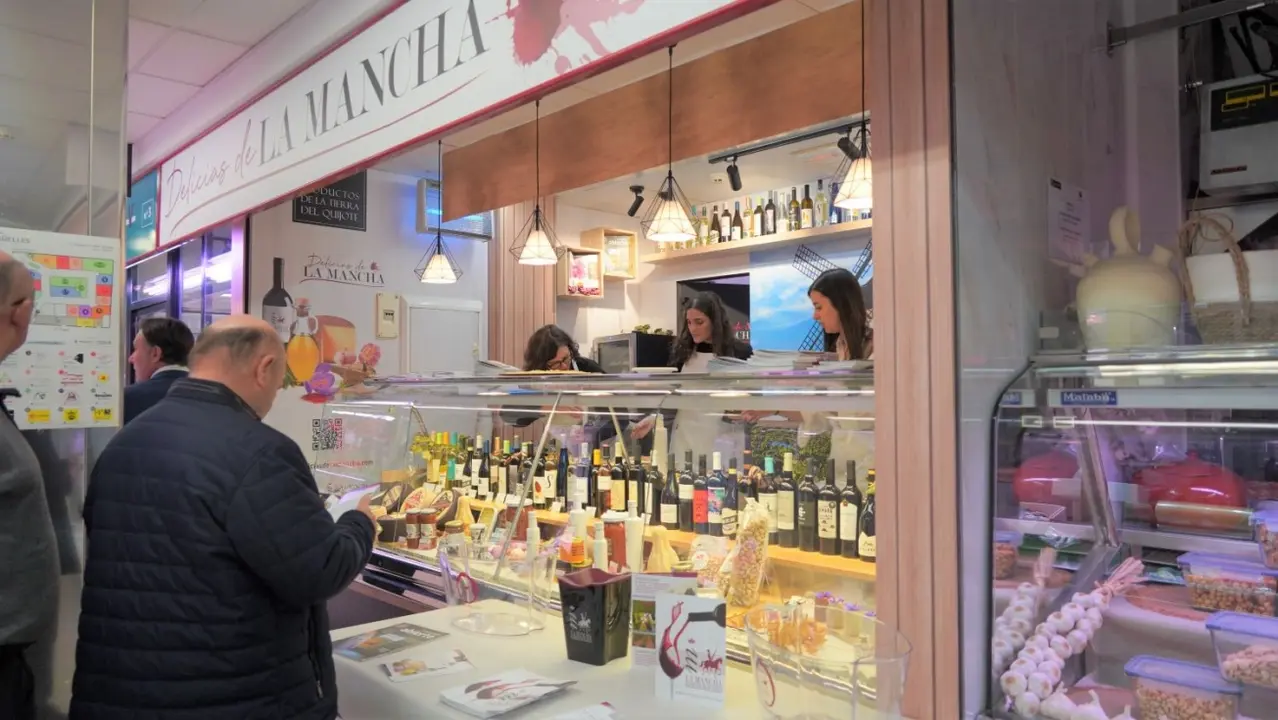 Delicias de La Mancha cuenta con un espacio de 18 m2 donde se ofertan 39 marcas de vino de 22 bodegas distintas acogidas a la Denominación de Origen La Mancha a disposición en venta directa en el puesto nº 2 del mercado de Argüelles de la capital madrileña.
