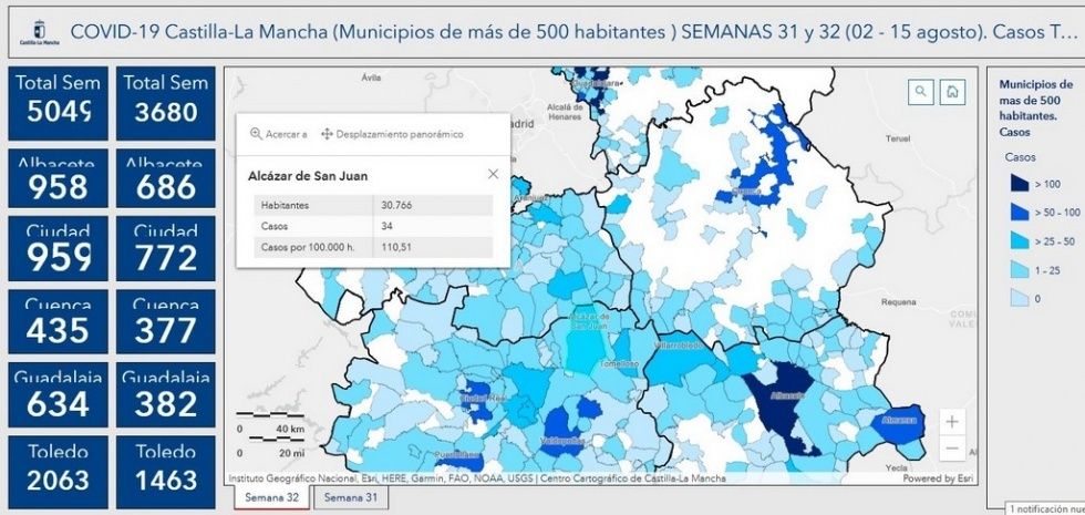 Las cifras son las siguientes: En Alcázar de San Juan se han registrado 34 nuevos casos en la semana 32 (del 9 al 15 de agosto), frente a los 40 contagios de la semana 31 (del 2 al 8 de agosto). En Campo de Criptana se han registrado 9 contagios en la última semana, que sumados a los 25 de la semana anterior hacen un total de 34 contagios en quince días. Herencia ha notado el incremento de casos Covid, ya que ha pasado de 15 a 20 en la última semana.