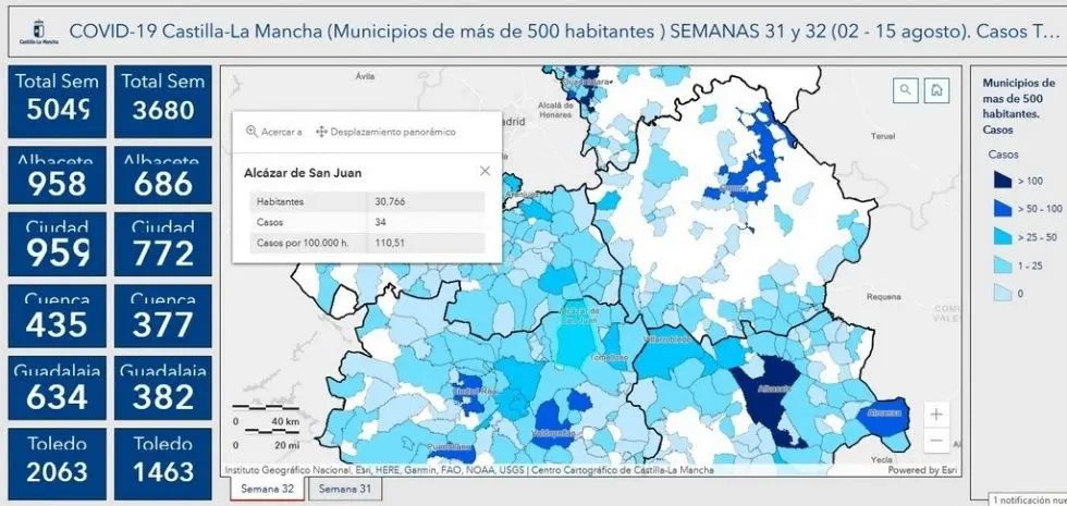 Las cifras son las siguientes: En Alcázar de San Juan se han registrado 34 nuevos casos en la semana 32 (del 9 al 15 de agosto), frente a los 40 contagios de la semana 31 (del 2 al 8 de agosto). En Campo de Criptana se han registrado 9 contagios en la última semana, que sumados a los 25 de la semana anterior hacen un total de 34 contagios en quince días. Herencia ha notado el incremento de casos Covid, ya que ha pasado de 15 a 20 en la última semana.