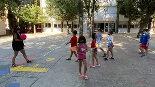 Alejandro Beamud, monitor de “La Bola de Cristal”, explica que los participantes están repartidos en grupos, según la edad, son grupos burbuja, y practican todo tipo de actividades, un montón de juegos de pelota y juegos en grupos, canciones, bailes y también actividades dentro del aula, algunas de ellas en inglés. Pero lo que más les gusta, dice, son los juegos de agua, sobre todo el día del agua, que tocan juegos de globos de agua que previamente se encargan de rellenar. También les gusta, explica, salir al parque y a la piscina, “un verano activo y divertido”: “ellos se divierten, intentamos que pasen un verano divertido y saludable”.