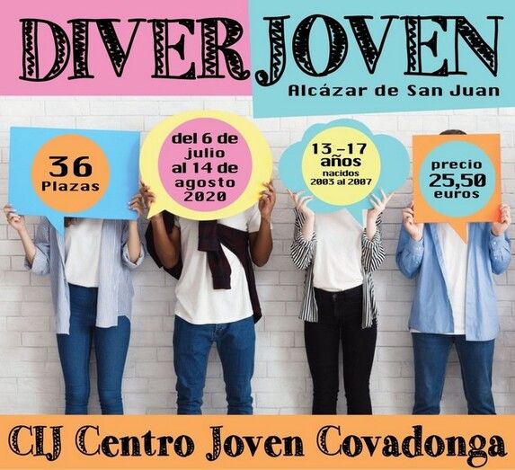 El Ayuntamiento de Alcázar de San Juan, a través de la concejalía de Infancia, Adolescencia y Juventud, pone en marcha este verano DiverJoven. Un programa de ocio alternativo que fomenta los hábitos de vida saludable entre los jóvenes con edades comprendidas entre los 13 y los 17 años.