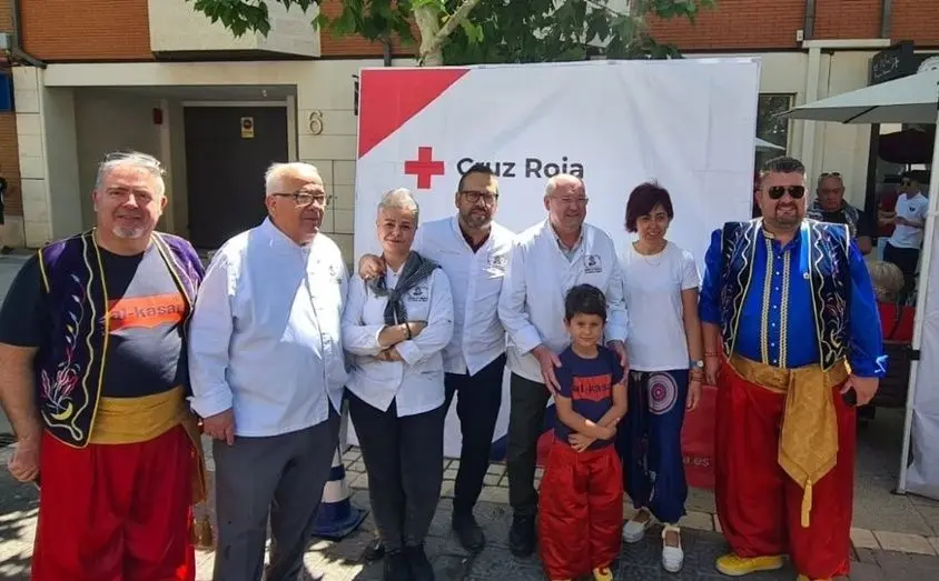 Los hosteleros de La Sonrisa de Don Quijote han querido sumarse esta mañana a las fiestas de Moros y Cristianos de Alcázar de San Juan, ofreciendo una degustación popular solidaria de duelos y quebrantos en el paseo de la Estación, donde se han dado cita festeros, agrupaciones, peñas y público en general.