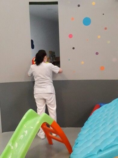 De la misma manera se iniciaba la limpieza de todos los edificios municipales, a los que también se les aplicó ozono, pero además el ayuntamiento se ha hecho cargo de la desinfección de otros edificios públicos, algunos no dependientes del ayuntamiento, como colegios, institutos y Escuelas infantiles que en estos días están acabando su limpieza en profundidad. Asimismo ya se ha comenzado con el Centro de mayores y después se desinfectará el Centro de Adultos y la Escuela de Idiomas.