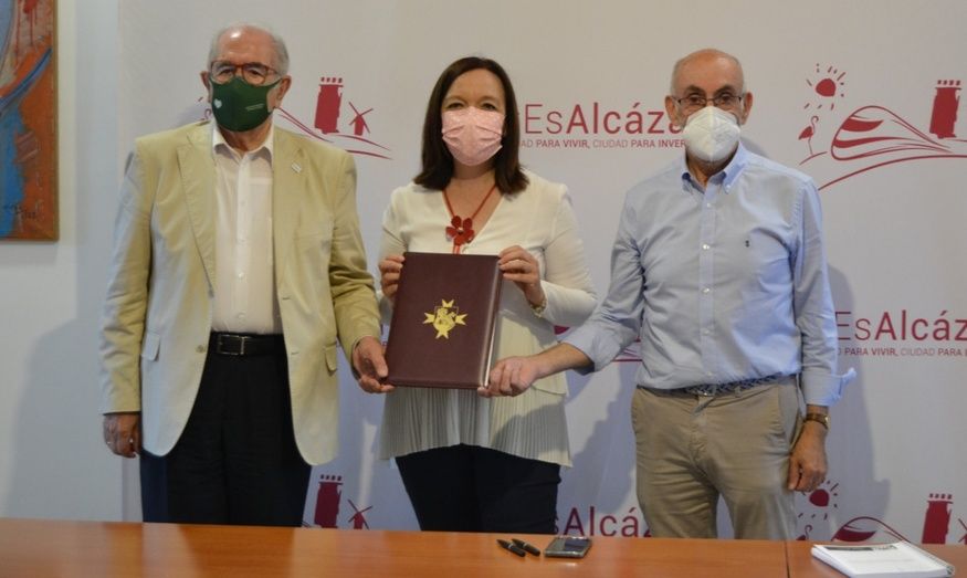 La alcaldesa de Alcázar de San Juan, Rosa Melchor y el presidente de la Asociación Española contra el Cáncer (AECC), en la provincia de Ciudad Real, Félix Peinado han firmadoesta mañana la renovación del convenio anual que ambas entidades mantienen y que este año asciende a 5.500 euros.