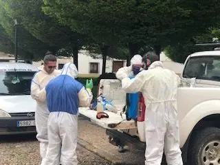 Esta tarea de desinfección de vehículos y edificios se está haciendo más fácil gracias a las máquinas de ozono, la del propio ayuntamiento y la que cedía CUAS (Comunidad de Usuarios de Aguas Subterráneas) que permite la actuación mucho más rápida en edificios.