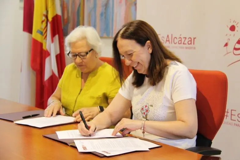 La alcaldesa de Alcázar de San Juan, Rosa Melchor, y la presidenta de la Asociación de Familiares y Amigos de Personas con Discapacidad (AFADIS), Julia Abengózar, han renovado esta mañana el convenio de colaboración entre el Ayuntamiento de Alcázar de San Juan y dicha asociación, para continuar con el servicio de transporte adaptado a personas mayores y personas con discapacidad.