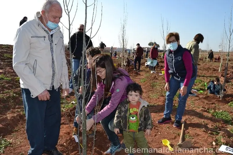 El Bosque de la Vida de Alcázar de San Juan sigue creciendo gracias a las familias del municipio y a las jornadas de plantación de árboles que el Ayuntamiento viene organizando durante los últimos años, a través de la Concejalía de Medio Ambiente y en parte dentro de la Estrategia de Desarrollo Sostenible Integrado (EDUSI) de la Unión Europea. Una iniciativa que este domingo, en su tercera plantación, ha convocado a las familias con hijos nacidos entre los años 2019 y 2021, quienes han tenido ocasión de plantar un álamo o una morera, que podrán cuidar y ver crecer, etiquetado con su nombre con el paso del tiempo.