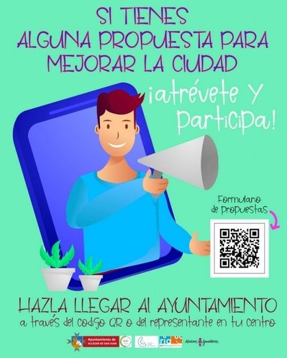 Para difundir la iniciativa, se distribuirá un cartel animando a la participación y con el nombre y la clase del centro educativo del representante a quien hacer llegar la propuesta. También pueden escanear el código QR del cartel que les dirige a un formulario donde, aportando una serie de datos, también pueden registrar su propuesta, queja o idea de mejora, será revisada por un técnico municipal que a su vez la hará llegar al representante del centro educativo correspondiente para que la haga llegar al plenario del CIA.