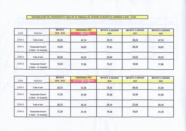 En el gráfico que acompaña esta información se puede apreciar cómo quedará la subida anual dependiendo de si la terraza está en la zona A o B o de la categoría. Se trata de la misma propuesta de la que ya informó El Semanal el pasado viernes en su edición impresa y digital y que ahora se da a conocer a todos los hosteleros de la ciudad, asegurándose desde alcaldía que “somos un Gobierno con capacidad de escucha activa”.