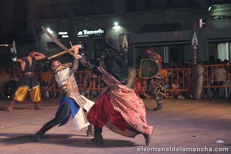 Las fiestas de Moros y Cristianos de Alcázar de San Juan ya están en marcha y en la jornada del viernes, tras la inauguración del Mercado Medieval y el desfile infantil, tuvo lugar la Embajada Mora, un espectáculo histórico a cargo del elenco de Legend Especialistas en la Plaza de España, una recreación de la llegada de los moros a la península y en este caso a Alcázar de la mano de Tarik que venció a los cristianos. El espectáculo finalizó con fuegos artificiales.