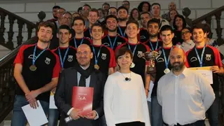 El Grupo76 correspondió el reconocimiento que les ha realizado el Ayuntamiento con la entrega a la alcaldesa de una fotografía y una camiseta del equipo firmadas por todos los campeones.