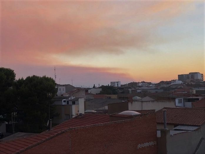 Como puede verse en las fotografías, el humo procedentes de los tres incendidos activos que en estos momentos existen en la provincia (Ruidera, Almadén y Malagón), puede verse y olerse en Alcázar de San Juan, donde el cielo presenta un aspecto entre grisaceo y rojizo.