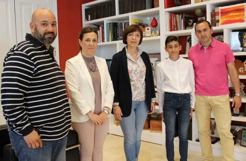 En reconocimiento a su esfuerzo, la alcaldesa de Alcázar de San Juan, Rosa Melchor, lo recibió en su despacho y le entregó una camiseta de #EsAlcázar “para que sepa que cada vez que juega no está solo en la pista, sino que con él estamos todos los vecinos y vecinas de Alcázar”.