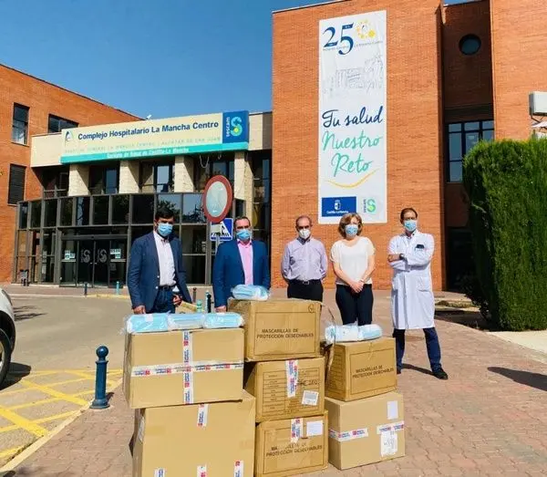 Agricultores de la comarca Mancha Centro, la mayoría de ellos de la localidad de Pedro Muñoz, han donado 5.500 mascarillas al Hospital de Alcázar de San Juan en la mañana de este 25 de junio. El acto de entrega se ha producido en las puertas del centro hospitalario por parte de agricultores de cooperativas pedroteñas y miembros de la Asociación de Afectados por la No legalización de Pozos de Explotaciones Prioritarias.