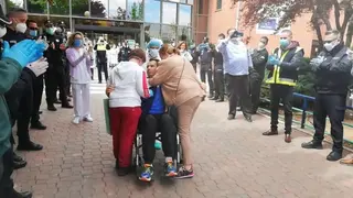 Visiblemente emocionado y sorprendido, Julio ha avanzado por el pasillo hasta encontrarse con Luisa y Pablo, para fundirse los tres en un esperado y emotivo abrazo, después de muchos días de lucha, miedo e incertidumbre. Días muy largos para los tres, en los que su contacto ha estado limitado a los dispositivos móviles y a la información que el personal sanitario ha podido ir transmitiendo (la cual, Luisa agradece sinceramente, así como a toda la policía, personal del hospital y municipal, familia, vecinos y demás personas que no han dudado en ayudarles en estos días).