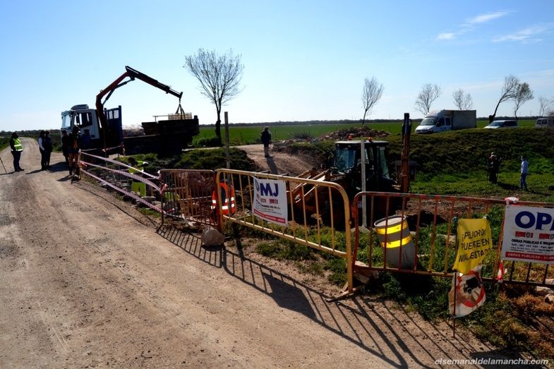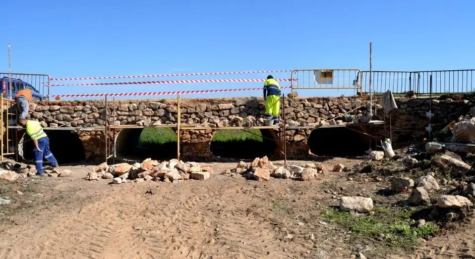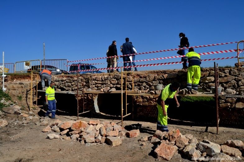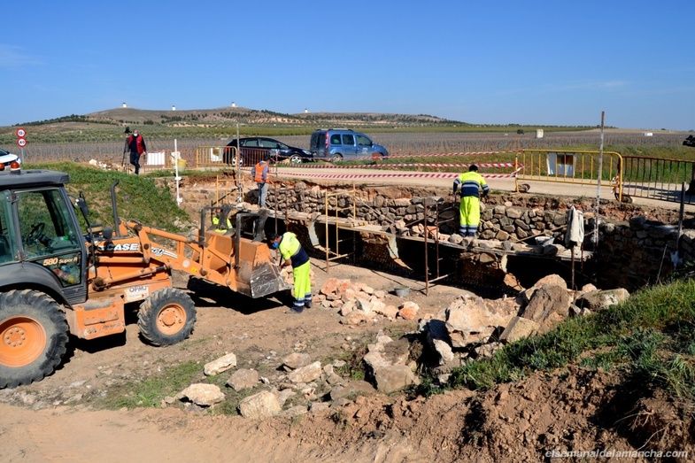 El puente de Valdespino, situado en el límite de los términos municipales entre Alcázar y Herencia, está siendo consolidado gracias a un proyecto cofinanciado por los dos ayuntamientos al cincuenta por ciento. Obras que está ejecutando la empresa Obras Públicas e Ingeniería Civil M.J. de Mota del Cuervo, con un presupuesto de unos 11.000 euros y que, según ha explicado su responsable Antonio Montes, durarán una semana aproximadamente, empleando a cinco trabajadores.