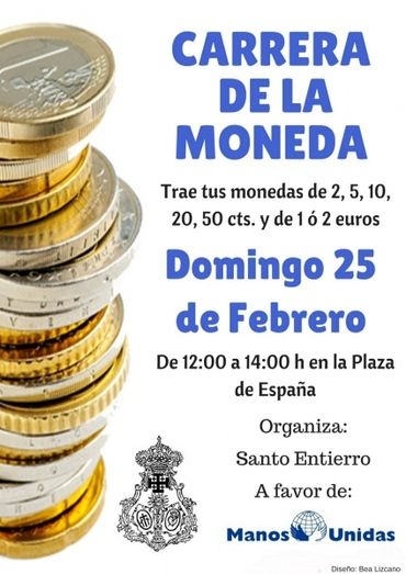 La Carrera de la Moneda se enmarca dentro de las actividades de la Campaña contra el Hambre de Manos Unidas, que este año lleva por lema COMPARTE LO QUE IMPORTA. También este domingo se celebrarán dentro de la misma campaña las acciones “Comparte tu tarta” y “Compra vida para regalar vida”, en la misma Plaza de España.