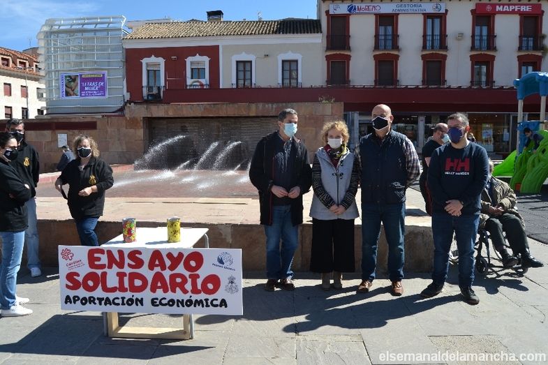 La Hermandad del Santo Entierro de Alcázar de San Juan no ha podido celebrar este año sus tradicionales actividades a beneficio de Cáritas y Manos Unidas debido a las restricciones impuestas por la pandemia (ensayo solidario y carrera de la moneda), pero en su lugar ha instalado este sábado tres mesas petitorias en distintos lugares de la ciudad (plaza de España, calle Castelar y Casa de la Hermandad) para seguir colaborando y siendo solidarios con estas organizaciones.