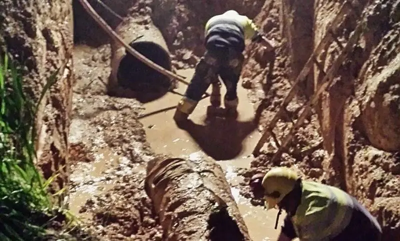 La rotura ha tenido lugar a la altura del km 8,5 de la carretera de Manzanares "en mitad del campo y en una plantación de avena". "Se ha tratado de una operación muy compleja ya que los terrenos donde se ha producido son muy blandos y arcillosos y la magnitud de la rotura bastante considerable por lo que ha hecho muy dificultoso el acceso de maquinaria a la zona", asegura. La rotura ocurrió sobre las 8:30 horas de la mañana del sábado "debido posiblemente a una sobrepresión" en la tubería principal, de 60 cm de diámetro, que lleva el agua desde Perdigueras al depósito de San Isidro de la localidad.