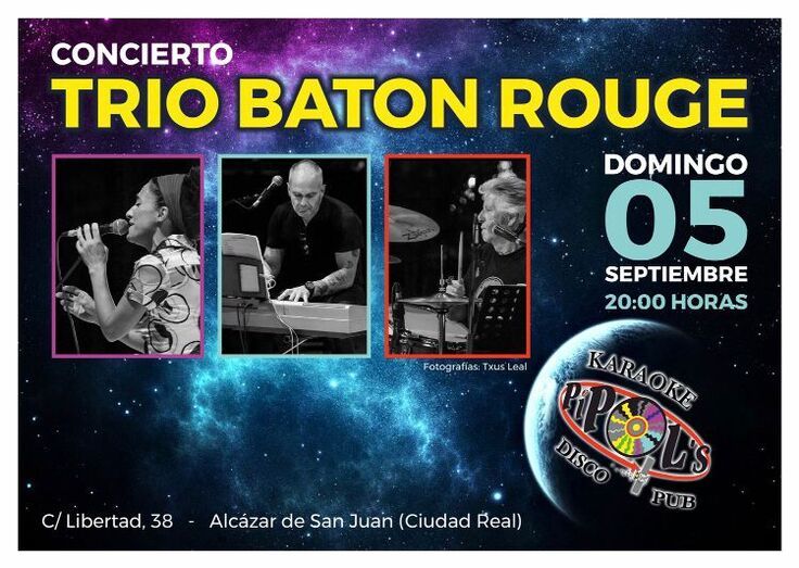 El trio Baton Rouge ofrecerá el próximo domingo, día 5 de septiembre, domingo de Feria en Alcázar de San Juan, una actuación en directo en el disco-pub Pipol (calle Libertad).