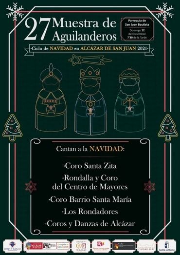 El próximo domingo, 12 de diciembre de 2021, a las 19:30 horas, tendrá lugar en la Parroquia de San Juan Bautista de Alcázar de San Juan la 27 Muestra de Aguilanderos, organizado por la Asociación de Coros y Danzas.
