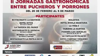Los establecimientos participantes son: Restaurante La Rantana, Hotel Intur (viernes y sábado), La Tapería del Pasaje, Restaurante El Navazal (viernes y sábado), Bodega La Tercia, Restaurante La Pinta & Beer, Malavida, Hotel Ínsula Barataria, La Viña E, Taberna La Santina, Pizzería Las Cancelas (viernes día 3), La Capilla de Palacio y Hotel Chateau Viñasoro (viernes y domingo)