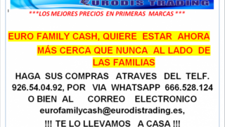 Asimismo, desde Euro Family Cash quieren ayudar a los ciudadanos a vencer esta batalla poniéndolo todo más fácil, por ello informar a la ciudadanía que puede realizar sus pedidos por whatsapp en el 666.528.124, en el teléfono 926.54.04.92 o en el correo eurofamilycash@eurodistrading.es.