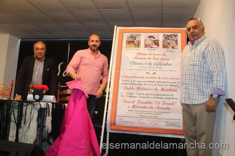 La empresa Zúñiga Toros S.L. del vallisoletano Carlos Zúñiga presentó ayer en Alcázar de San Juan el cartel de la única corrida de Feria que tendrá lugar en esta localidad el día 6 de septiembre, con toros de Los Eulogios para Pablo Hermoso de Mendoza, a caballo; y a pié, el Fandi y Morenito de Aranda, triunfador en la Feria de Alcázar del año pasado.