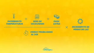 La siguiente 'fórmula de la felicidad', elaborada por el equipo de meteorólogos de eltiempo.es en colaboración con psicólogos, muestra las variables que entran en juego en el Yellow Day y la explicación de cómo la meteorología, la luz y el verano influyen en nuestro estado de ánimo.