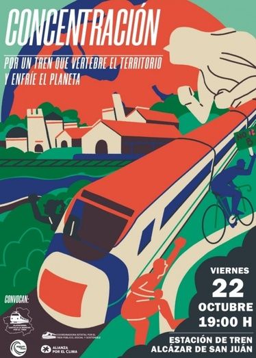 En la provincia de Ciudad Real se realizará una concentración el 22 de octubre a las 19,00h en la Estación de Alcázar, a la que Izquierda Unida anima a participar al conjunto de la sociedad, y en especial a aquellas comarcas que aspiran a recuperar el ferrocarril o recuperar servicios ferroviarios.