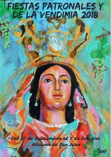 La Archicofradía de la virgen presenta el cartel anunciador de las Fiestas Patronales y de la Vendimia 2018, cuyo autor y ganador del II Concurso de carteles es el alcazaréño José Manuel Fernández Zarco. El título de la obra ganadora es: Madre Alcazareña. Y la técnica empleada es acrílico sobre lienzo.