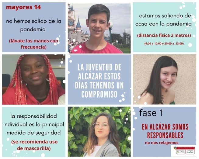 Se parte con el eslogan “La juventud de Alcázar estos días tenemos un compromiso” y a través de diferentes mensajes se quiere indicar a todos que en Fase 1 “En Alcázar somos responsable, no nos relajemos”. Los jóvenes también han querido realizar una llamada de atención al colectivo juvenil para que cumpla las normas ya que se plantean que la actitud de algunos va a condicionar la vida de muchos.