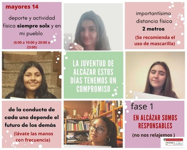 Se parte con el eslogan “La juventud de Alcázar estos días tenemos un compromiso” y a través de diferentes mensajes se quiere indicar a todos que en Fase 1 “En Alcázar somos responsable, no nos relajemos”. Los jóvenes también han querido realizar una llamada de atención al colectivo juvenil para que cumpla las normas ya que se plantean que la actitud de algunos va a condicionar la vida de muchos.