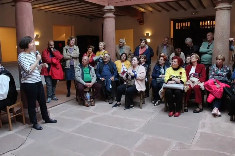 Además de compartir unas palabras, la primera edil se animó a bailar una jota manchega junto a la asociación de Coros y Danzas de Alcázar de San Juan, que amenizó la visita de los ferroviarios a la ‘Casa del Hidalgo’.