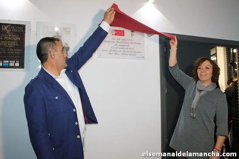 Ante una multitud de asistentes de la propia Agrupación y Hermandades de la ciudad, tanto la alcaldesa de Alcázar como el presidente de la Agrupación Musical, Santiago Díaz de las Heras, procedieron a la inauguración de las instalaciones con una placa conmemorativa en la que se puede leer que la sede fue inaugurada por la regidora municipal, que estuvo acompañada por el concejal de Cultura, Mariano Cuartero, la teniente de alcalde, Rosa Idalia Cruz y la concejala de Seguridad, Amparo Bremard.