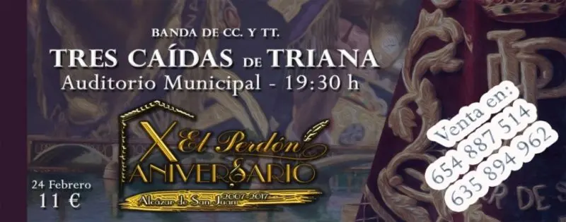 Y, tal y como comentan desde la propia agrupación, no había mejor forma para celebrarlo que culminar el elenco de artistas que han pisado el escenario del auditorio de Alcázar de San Juan. Para ello, se podrá disfrutar en vivo y en directo de la banda de cornetas y tambores "Cristo de las Tres Caídas" del barrio sevillano de Triana. Una de las formaciones musicales más conocidas y querida por todo el mundo cofrade.