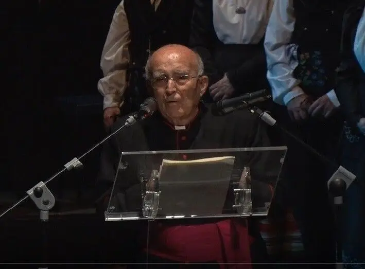 Después de la actuación sorpresa de los Coros y Danzas de Alcázar, subió al escenario un Longinos emocionado, que expresaba las veces que “he soñado con esto: hermanar a Aracena con Alcázar a través de San Blas, (patrón de Aracena y con tradición en Alcázar) y traer a los Coros y danzas de mi pueblo, la pena es que ese sueño se ha hecho realidad cuando ya no soy párroco de Aracena. Pero el señor te paga cuando él quiere”. Destacaba la importancia de la ayuda, la colaboración entre todos para llevar la cruz que Dios nos da “cuando he visto a la alcaldesa, ¿cómo iba a pensar que estaban también los Coros y Danzas? … mi cruz se ha hecho hermosa como mi Torreón, mi Alcázar, mis molinos; mi Alcázar se ha hecho tan grande como el horizonte y el firmamento; me sobra todo porque lo tengo todo”.