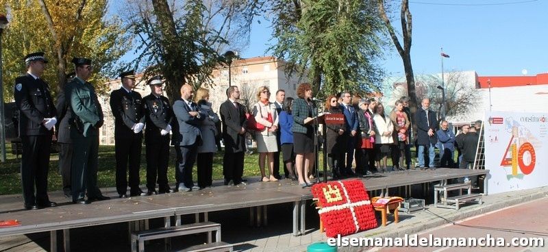 La alcaldesa también ha destacado la importancia de estos 40 años de Constitución «que además de muchas cosas, nos ha permitido a las mujeres tener los mimos derechos y oportunidades que los hombres, y nos ha permitido que tras tener siete padres esta Constitución, hoy os hable la primera alcaldesa de Alcázar». En lo que ha calificado como «40 años de desarrollo y prosperidad», Melchor ha terminado destacando por encima de todo «la consagración de la tolerancia y el consenso».