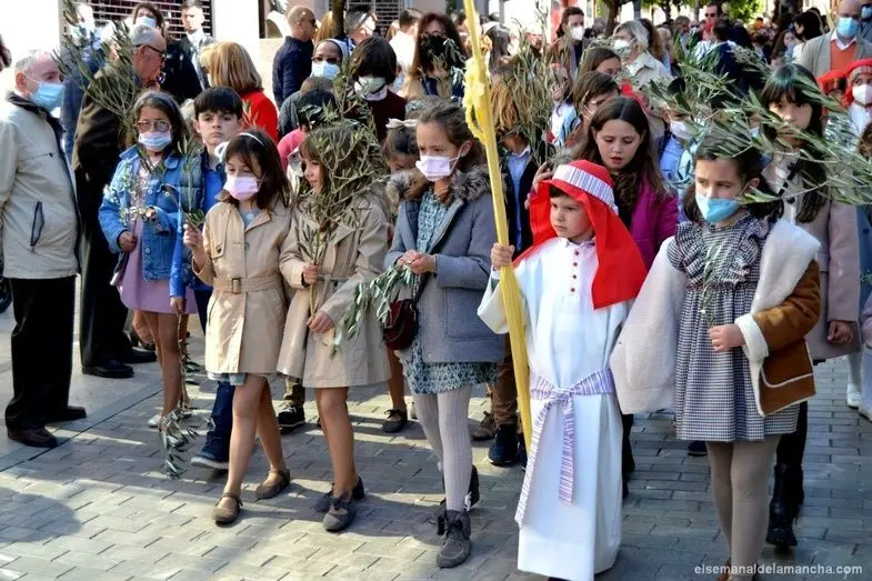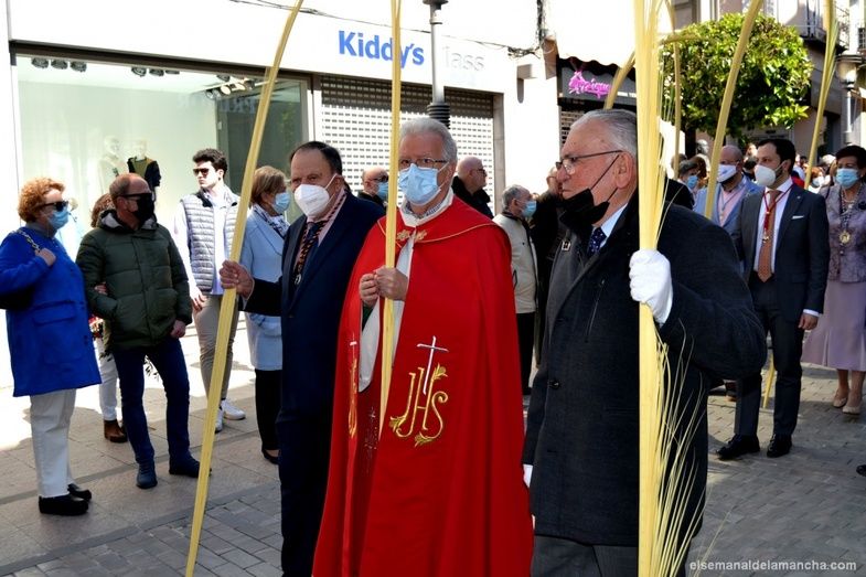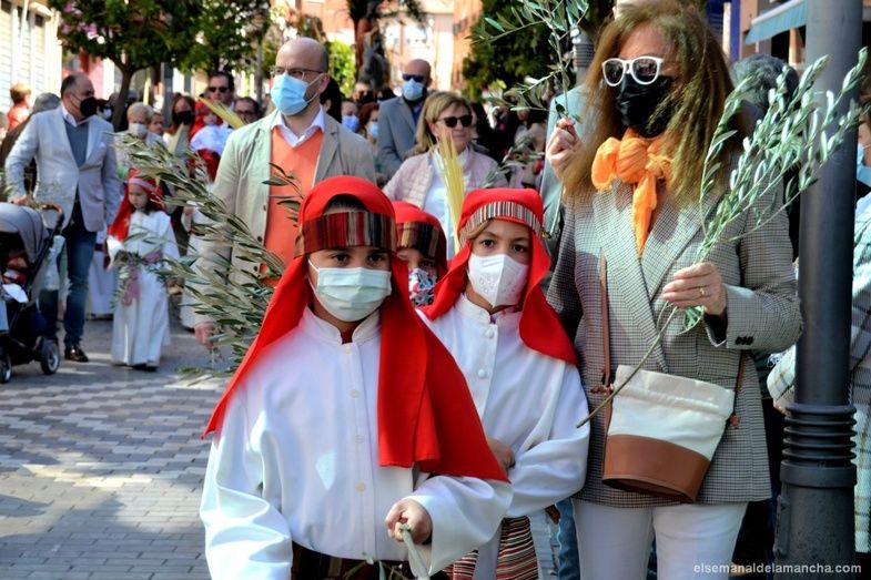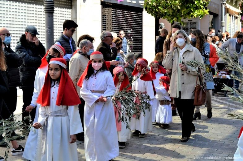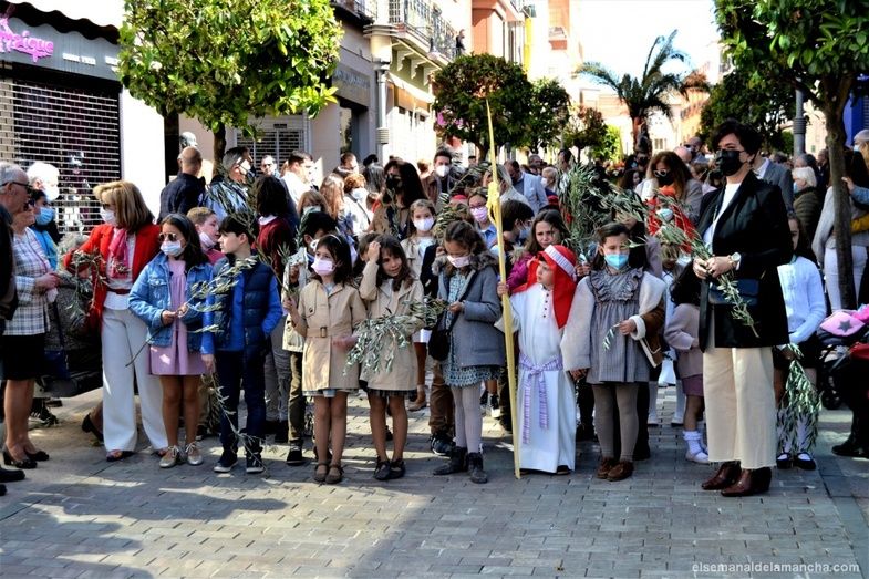 La procesión de la Borriquilla, en la que se representa la Entrada Triunfal de Jesús en Jerusalem, ha sacado esta mañana a las calles de Alcázar de San Juan a multitud de personas, niños y mayores que, aprovechando el sol y el buen tiempo de este Domingo de Ramos, no han querido perderse la segunda procesión de la Semana Santa 2022 en esta localidad.