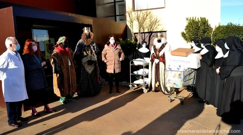 Sus Majestaddes los Reyes Magos de Oriente han llegado esta mañana a Alcázar de San Juan para hacer su tradicional visita a las residencias de mayores, discapacitados y planta de Pediatría del Hospital La Mancha Centro y repartir regalos entre los usuarios, entregados este año con toda la cautela posible en la entrada de estos centros y no en el interior.