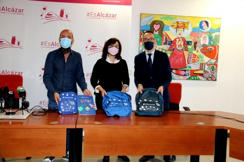 El director de la Caixa en Alcázar de San Juan, Raúl Peralta, ha hecho entrega esta mañana, a la alcaldesa, Rosa Melchor, y al concejal de Educación, Mariano Cuartero, de un centenar de mochilas con diverso material escolar para ayudar a los alumnos del municipio y familias con dificultades, en el inicio de curso. Material que se distribuirá desde la Concejalía de Educación y que llegará, atendiendo a las indicaciones de Servicios Sociales, a las familias necesitadas del municipio.
