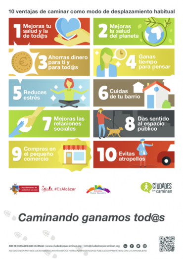 El ayuntamiento de Alcázar de San Juan, mantiene así su compromiso de fomentar las ventajas de caminar como forma de desplazamiento habitual por un municipio que pertenece a la Red de Ciudades que Caminan.