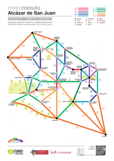 Así, en la página web del ayuntamiento, se puede encontrar las “10 ventajas de caminar como medio de desplazamiento habitual”,- como la mejora de la salud o el ahorro económico,- y el mapa del “Metrominuto” que muestra las distancias que hay entre distintos puntos neurálgicos de la ciudad así como el tiempo que hay que invertir para los desplazamientos a pie y que se puede descargar con un código QR.