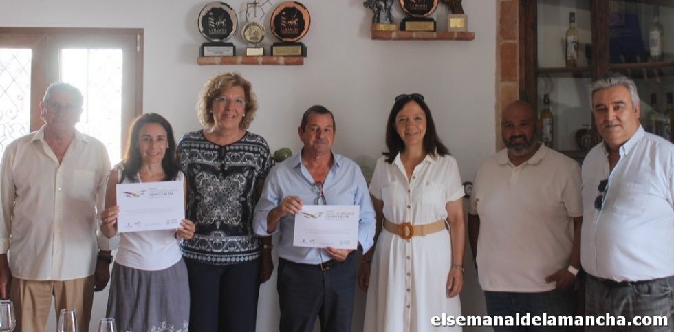 La delegada provincial de Agricultur, Amparo Bremard, acompañada por la alcaldesa de Alcázar, Rosa Melchor, y el alcalde de Alameda, José Ángel Jiménez, ha entregado este lunes, en las instalaciones de la Cooperativa San Lorenzo de Alameda de Cervera, al presidente de la misma, Miguel Casero, de los dos diplomas obtenidos en los Premios Gran Selección Campo y Alma. Los premios han sido una plata para el Gran Prior Alameda, que este año además ya ha ganado el cuarto oro Airén por el Mundo, y bronce para el Cantivano Verdejo.