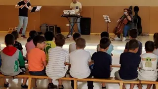 La Escuela Municipal de Música ha realizado una visita a los colegios Alces, Jesús Ruiz y Sagrada Familia en la mañana del lunes 23 de mayo. Con una doble actividad, la primera adaptada a los niños del último curso de infantil y otra para los alumnos del primer ciclo de primaria.