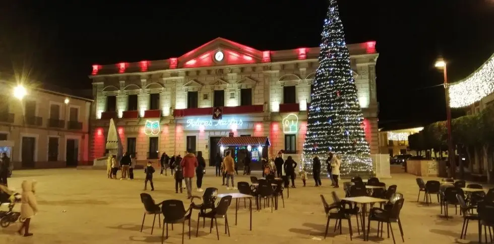 El conjunto, completado con la cabaña de Papá Noel, el gran árbol de luces, los cortinas iluminadas, las terrazas y los demás adornos de Navidad dejan la bonita estampa de diciembre que puede verse en la fotografía.