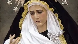 Soledad que lloró al pie de una cruz en la que estuvo clavada la salvación del mundo, y de la que sólo pende un sudario, transformado ahora en una hermosa azucena, que formando una S trepa por ella. Es María, que nos recuerda que por su pureza, su concepción inmaculada y su SÍ sin fisuras a Dios, la vida venció a la muerte y que en la Cruz ante la que Ella tanto sufrió, encontraremos el camino hasta el Cielo.