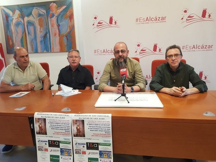 La Hermandad de San Cristóbal de Alcázar de San Juan ha presentado el IX Concurso de Cuentos Escolares y Dibujo que organiza cada año, y que vuelve después de la pandemia. El concejal de Seguridad Ciudadana y Educación, Mariano Cuartero, con el presidente de la Hermandad, Pedro Murat, y el presidente del Ateneo, Luís Ángel Ajenjo, como parte del jurado, han presentado este concurso escolar en el que suelen participar más de 400 escolares, bien en la modalidad de cuentos o dibujo para los más pequeños.