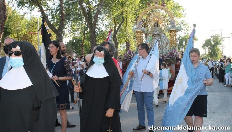 La Archicofradía de la Virgen del Rosario, Patrona de Alcázar de San Juan, desarrolló ayer la procesión con la imagen de la Virgen desde la residencia de mayores Santa Marta (donde había sido trasladada el sábado 28) hasta su templo en Santa María La Mayor, en una salida extraordinaria con motivo del XX Aniversario de la Coronación y en lo que se ha denominado “Rosario de Esperanza”.