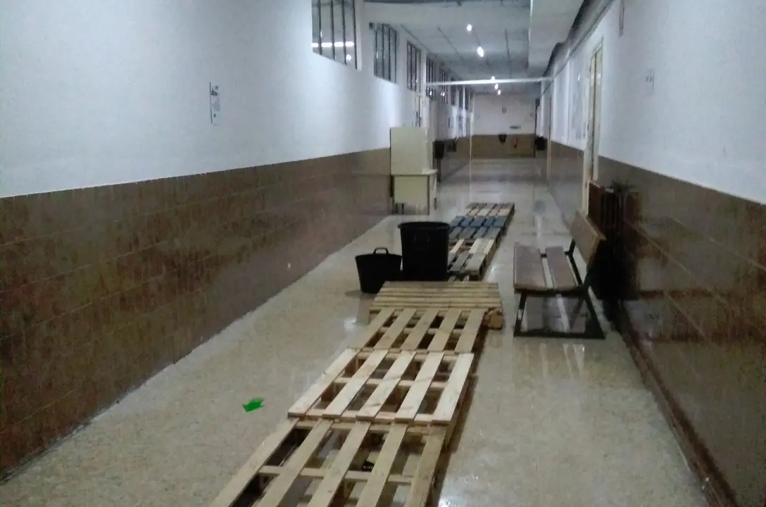 Así lo ha explicado en declaraciones a elsemanaldelamancha.com uno de los profesores del taller, Antonio Diaz, quien hoy ha tenido que enviar a los alumnos a casa ante la imposibilidad de seguir dando clase en el aula. Según detalla, "siempre que llueve hay goteras, pero la situación esta mañana ha llegado a ser insostenible, con chorros de agua cayendo del techo y pasillos inundados de agua, en los que hemos tenido incluso que poner palés de madera para pisar sobre ellos y salir de las zonas inundadas".